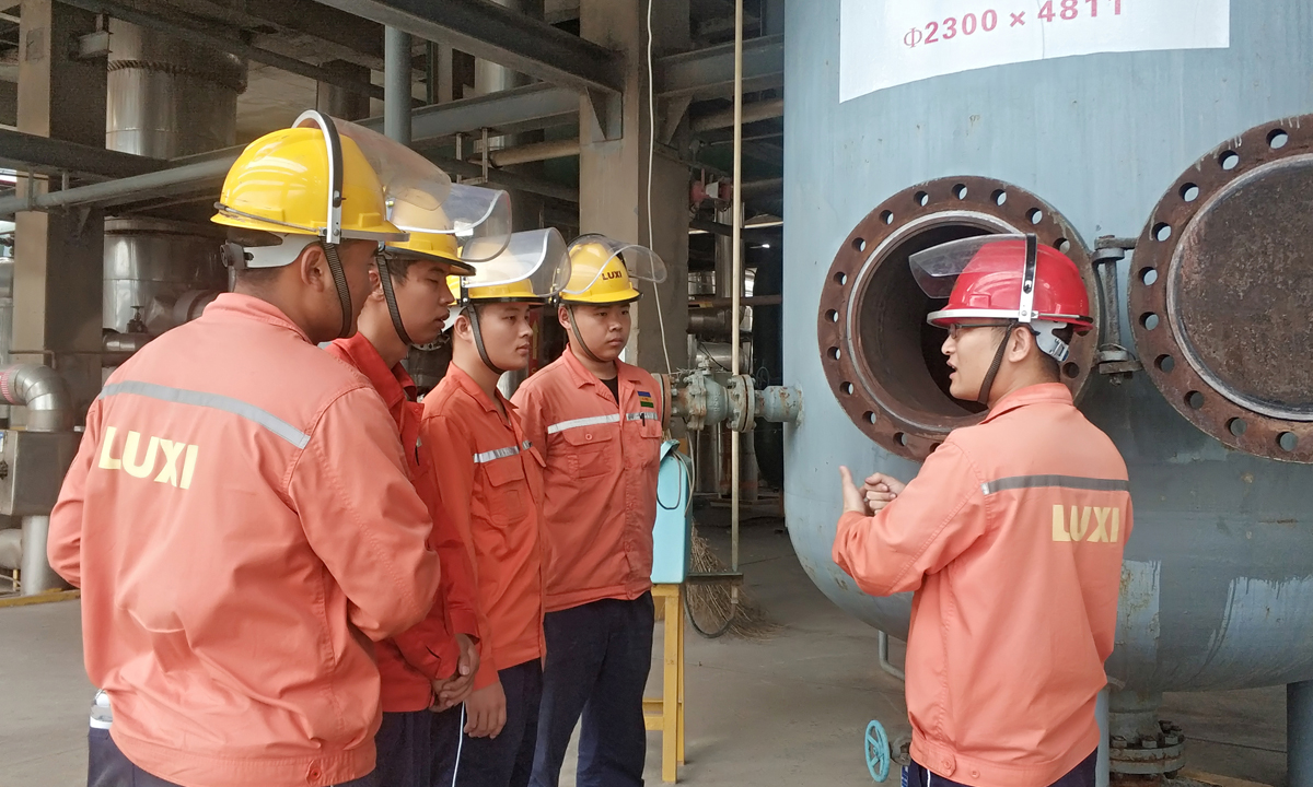 胡永岳是2019年新進(jìn)廠的員工。在他看來(lái),現(xiàn)場(chǎng)培訓(xùn)更能直觀感性的認(rèn)識(shí)設(shè)備?!捌綍r(shí)裝置運(yùn)行的時(shí)候,只能從師傅的言語(yǔ)中,和作業(yè)指導(dǎo)書(shū)的描述里,去想象每個(gè)設(shè)備的內(nèi)部結(jié)構(gòu),沒(méi)有直觀感受。這次現(xiàn)場(chǎng)培訓(xùn),終于弄明白脫氨塔的塔內(nèi)件結(jié)構(gòu)了,這對(duì)我迅速的掌握裝置的工藝流程和以后的學(xué)習(xí)提高都有很大的幫助?!焙涝勒f(shuō)。